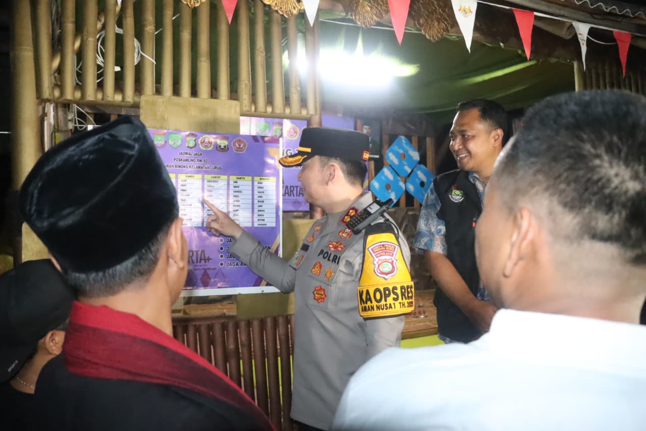 Dalam kesempatan itu, Kapolres melakukan pengecekan sarana prasarana serta memastikan sistem pengamanan lingkungan berjalan efektif dan efisien. Ia menyampaikan bahwa di wilayah Kelurahan Binong terdapat sekitar 16 titik Pos Kamling Terpadu sebagai wujud nyata sinergitas antara aparat dan masyarakat dalam mencegah potensi gangguan kamtibmas melalui Pam Swakarsa.