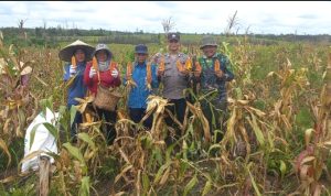 Bhabinkamtibmas Polsek Nanga Pinoh dan Pemerintah Desa Merah Arai Panen Jagung Hibrida