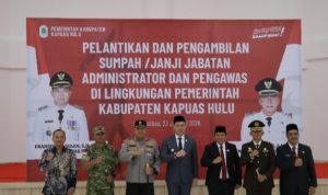 Kapuas Hulu MEDIA KOTA POS – Kapolres Kapuas Hulu, AKBP Roberto Aprianto Uda, S.I.K., M.H., menghadiri kegiatan Pelantikan dan Pengambilan Sumpah/Janji Jabatan Administrator dan Pengawasan di Lingkungan Pemerintah Kabupaten Kapuas Hulu, pada Jumat (23/1/2026).
