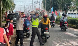 “Memasuki hari sekolah, hadirnya Polri di tengah masyarakat guna memastikan kamseltibcar lantas lancar, seperti di ketahui di sepanjang jalan Juang dan Jalan Provinsi antara pukul 06.00 wib sampai dengan pukul 07.00 wib lalu lintas kendaraan cukup padat khususnya di dominasi kendaraan roda dua saat orang tua mengantar putra putrinya ke sekolah,” ujar AKBP Harris.