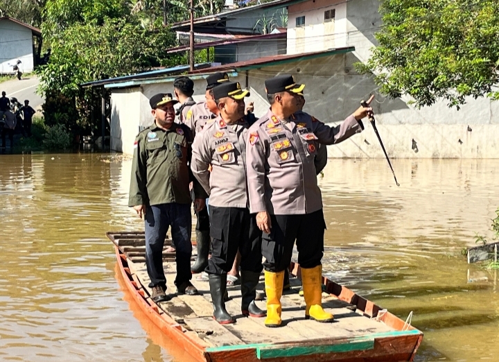 Kapolres Melawi Turun ke Lokasi Pantau Kondisi Banjir di Kecamatan Sayan dan Kota Baru