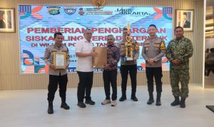 Tangsel, mediakota.com — Polres Tangerang Selatan memberikan penghargaan kepada tiga (3) Siskamling Terpadu terbaik di wilayah hukumnya, sebagai apresiasi atas peran serta masyarakat dalam menjaga keamanan dan ketertiban lingkungan.