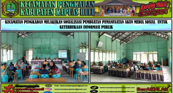 Kecamatan Pengkadan mulai melakukan keterbukaan Informasi Publik, kini sudah mulai mererapan ke 11 desa di Kecamatan Pengkadan, pada hari ini Senin di Gor Kecamatam Pengkadan melakukan kegiatan Sosialisasi ke 11 Desa dalam pembuatan pemanfaatan akun Instagram untuk keterbukaan informasi public di pemerintahan Desa agar mudah di askes Masyarakat tetnag kegiatan Desa.
