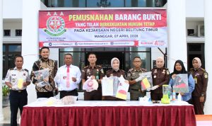 Manggar, Belitung Timur – Kejaksaan Negeri Belitung Timur ( Beltim) telah melaksanakan kegiatan pemusnahan barang bukti dari perkara tindak pidana umum yang telah memperoleh kekuatan hukum tetap (inkracht van gewijsde). Bertempat di halaman Kantor Kejari Beltim. Selasa (7/4/2026).