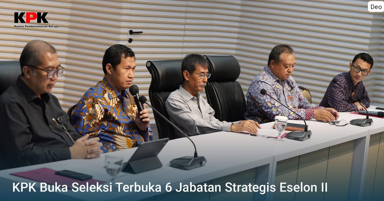 Jakarta, mediakota.com — mulai 20 Oktober 2025, KPK buka Seleksi Enam Jabatan Pimpinan Tertinggi (JPT) Pratama Setara Eselon II sebagai bagian dari penguatan kelembagaan dan penerapan sistem merit dalam birokrasi.