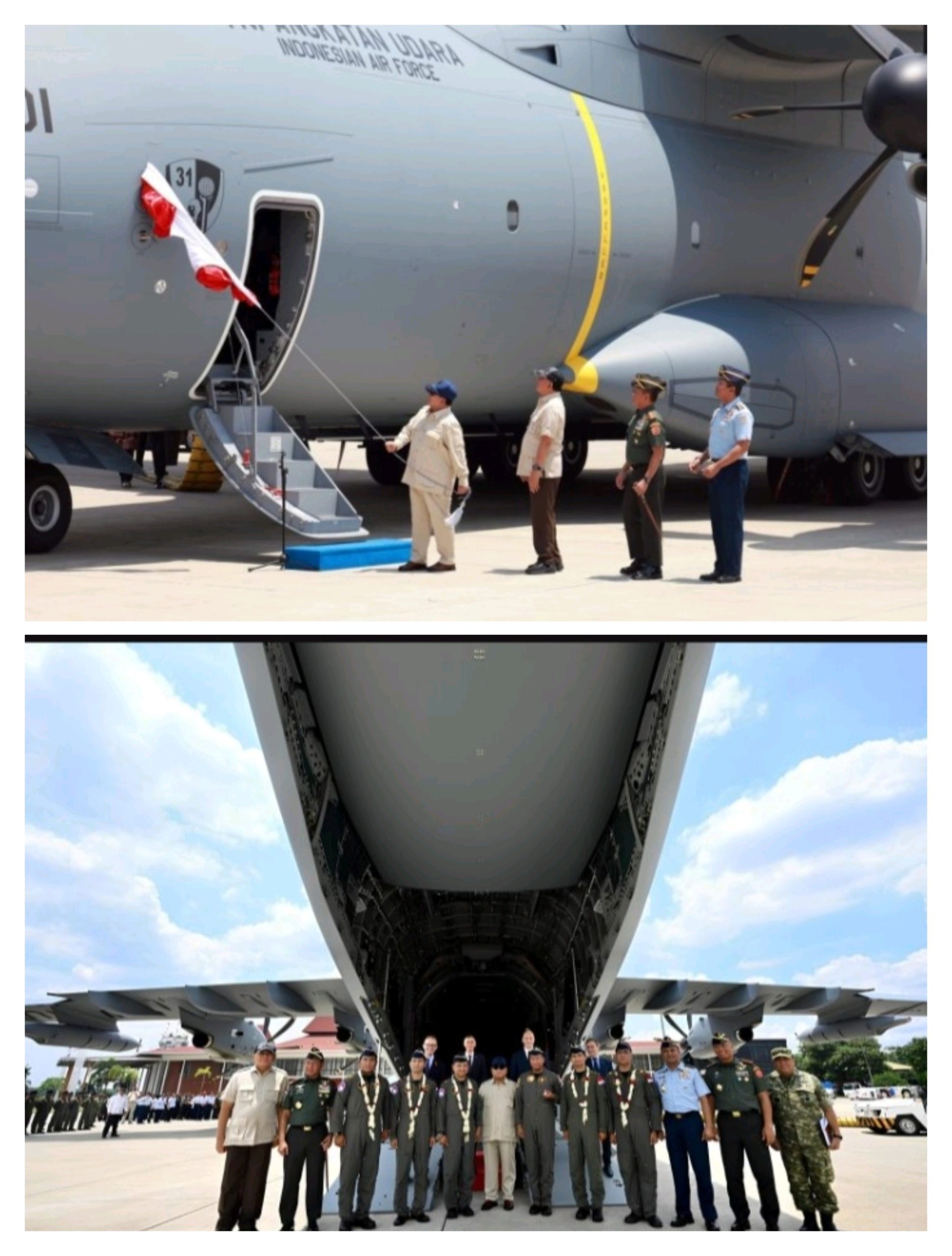 JAKARTA Mediakota.com– Menteri Pertahanan RI Sjafrie Sjamsoeddin mendampingi Presiden Republik Indonesia Prabowo Subianto menyerahkan satu unit pesawat angkut strategis A400M kepada Tentara Nasional Indonesia Angkatan Udara (TNI AU) di Pangkalan TNI AU (Lanud) Halim Perdanakusuma, Jakarta, Senin (3/11/2025).
