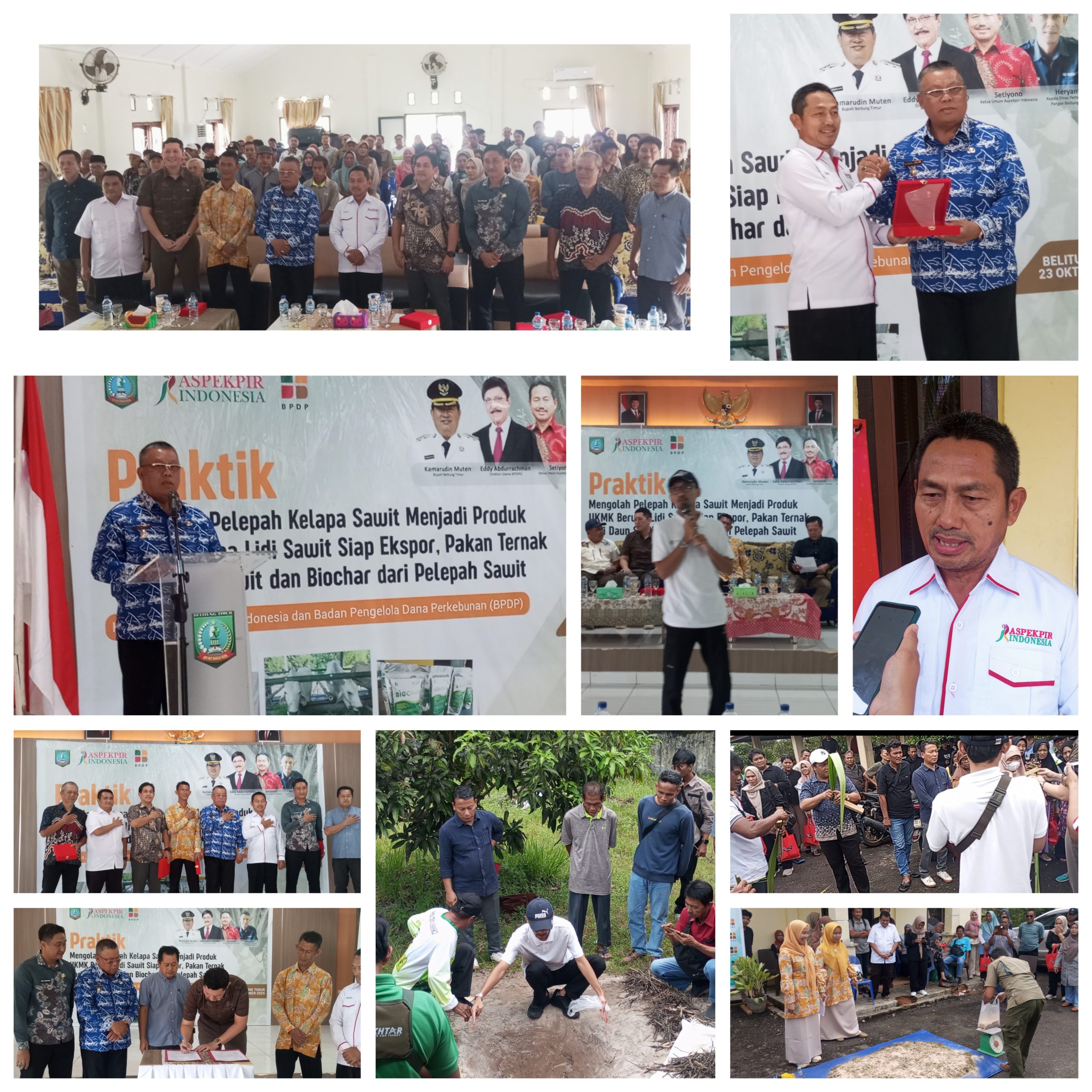 Gantung, Belitung Timur – Praktik Mengolah Pelepah Kelapa Sawit Menjadi Produk UKMK berupa Lidi Sawit siap ekspor, pakan ternak dari daun sawit dan biochar dari pelepah sawit yang merupakan kolaborasi antara Badan Pengelola Dana Perkebunan Kelapa Sawit (BPDP-KS) dan Asosiasi Petani Kelapa Sawit Perkebunan Inti Rakyat (ASPEKPIR) Indonesia berlangsung sukses. Dengan dibuka langsung oleh Wakil Bupati Beltim Khairil Anwar yang berkesempatan hadir di ruang pertemuan Kantor Camat Gantung Kabupaten Belitung Timur. Kamis (23/10/2025) pukul 09.30 WIB.