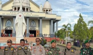 Putussibau mediakota.com – Dalam rangka memberikan rasa aman dan nyaman kepada umat Kristiani yang melaksanakan ibadah, jajaran Polres Kapuas Hulu bersama Polsek Putussibau Utara melaksanakan pengamanan Ibadah Misa Jumat Agung (Penghormatan Salib) dalam rangkaian Perayaan Paskah Tahun 2026 di Gereja Katolik Paroki Hati Santa Perawan Maria Tak Bernoda (HSPMTB) Putussibau, Jumat (3/4/2026).