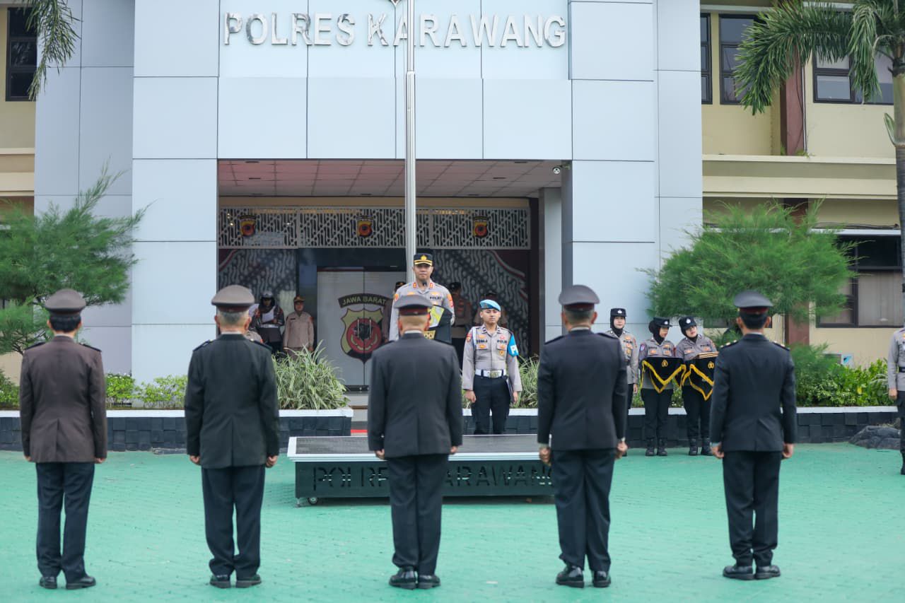 Upacara yang dimulai pukul 07.30 WIB itu dipimpin langsung Kapolres Karawang AKBP Fiki N. Ardiansyah, dan dihadiri Wakapolres, para Pejabat Utama (PJU), Kapolsek jajaran, Bintara, ASN, serta siswa Latja Diktuk Bintara Polri T.A. 2025 dari SPN Polda Jabar.