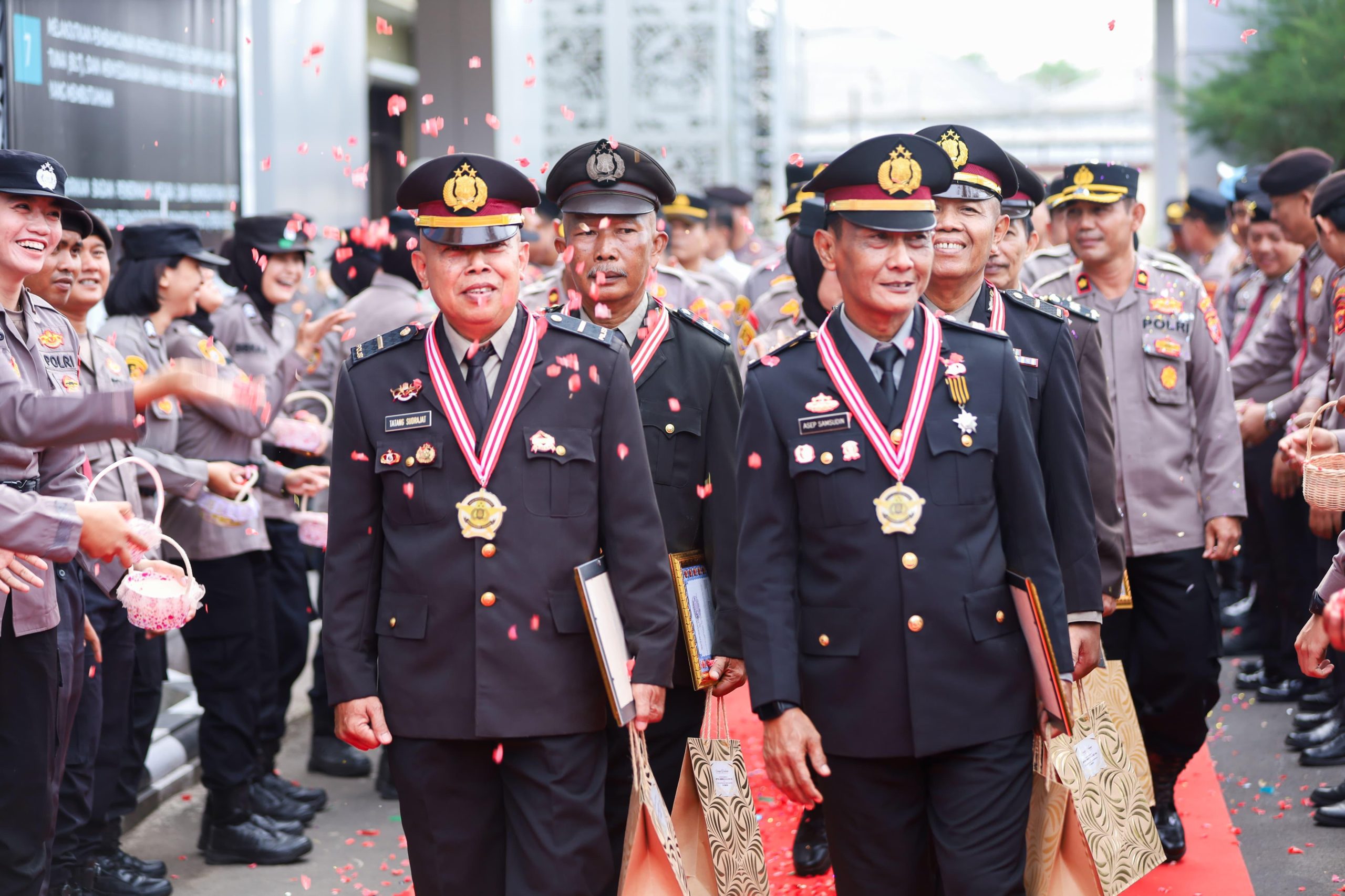 Satu per satu nama para purnawirawan dipanggil, disambut tepuk tangan rekan sejawat. Mereka adalah sosok-sosok yang telah menuntaskan masa bhakti dengan penuh tanggung jawab dan loyalitas: