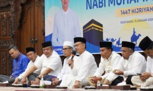 PONTIANAK MEDIA KOTA POS – Wali Kota Pontianak Edi Rusdi Kamtono mengajak seluruh aparatur sipil negara (ASN) di lingkungan Pemerintah Kota Pontianak untuk menyeimbangkan antara pelayanan publik dan peningkatan spiritualitas. Hal tersebut disampaikannya pada peringatan Isra Mikraj Nabi Muhammad SAW 1447 Hijriah yang digelar di Aula Rumah Jabatan Wali Kota Pontianak, Kamis (15/1/2026) malam.