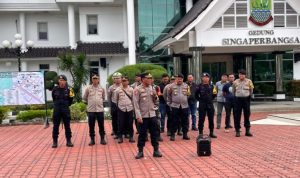 Apel yang berlangsung di halaman Pemda Karawang itu dipimpin langsung oleh Kabag Ops Polres Karawang Kompol Suparlan, S.Pd., dan dihadiri oleh Danyon Satbrimob Batalyon C Polda Jabar AKBP Bagus Amrulloh N.I., S.Farm., S.I.K., Kapolsek Karawang Kompol H. Senen Ali, S.Pd., Kasat Intelkam AKP Agustana Eka Kusuma, S.I.K., M.A.P., serta Kasat Samapta AKP Wahyu Kurniawan, S.H.