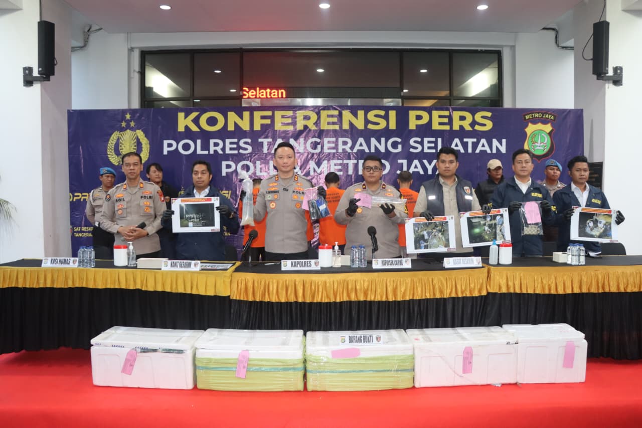 Turut hadir dalam konferensi pers tersebut, Kapolsek Curug KOMPOL Kresna Ajie Perkasa, S.I.K., M.I.K., Kasat Reskrim Polres Tangsel AKP Wira Graha Setiawan, S.Tr.K., S.I.K., C.B.A., serta Kasi Humas Polres Tangsel AKP Agil Sahril, S.H.