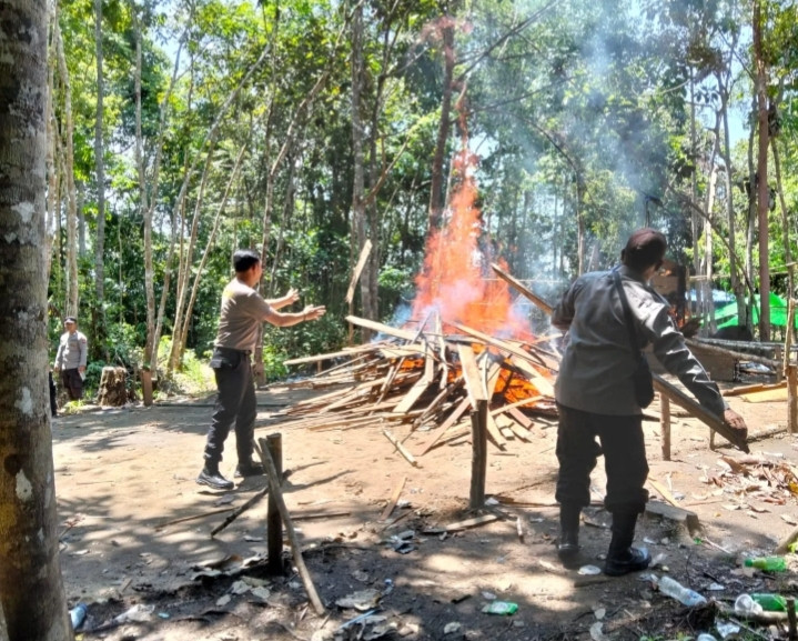 Sebagai langkah tegas, personel Polsek Silat Hilir melakukan pembongkaran dan pembakaran terhadap fasilitas arena kelang sabung ayam guna mencegah lokasi tersebut kembali digunakan sebagai tempat perjudian.