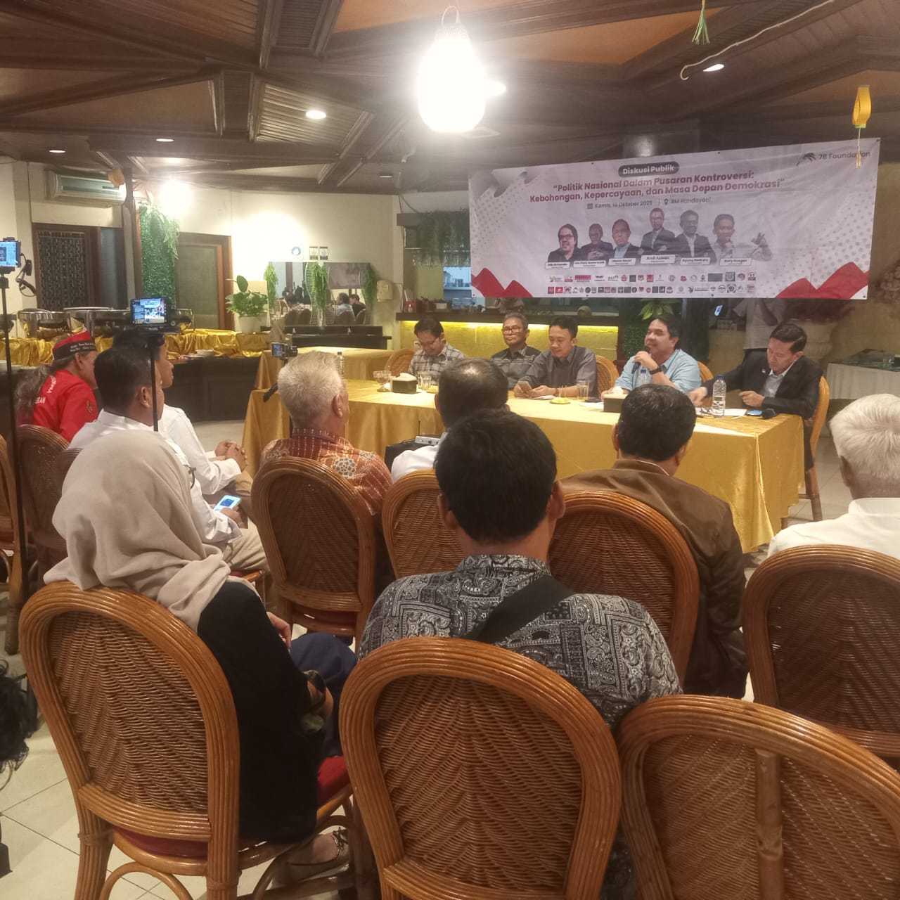 Relawan pendukung Prabowo-Gibran yang tergabung dalam 78 Foundation mengadakan diskusi publik dengan tema “Politik Nasional Dalam Pusaran Kontroversi: Kebohongan, Kepercayaan, Dan Masa Depan Demokrasi”, pada hari Kamis, 16 Oktober 2025 di Restoran Handayani, Jakarta.