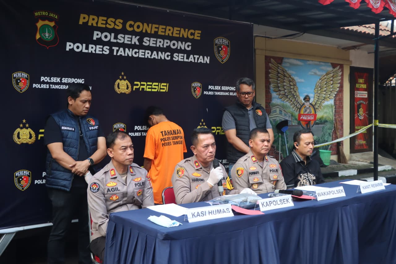 Hal tersebut disampaikan Kapolsek Serpong Kompol Suhardono, SH, MM dalam konferensi pers di Mapolsek Serpong, Rabu (24/9) siang. Turut hadir Kasi Humas Polres Tangsel AKP Agil Sahril, Wakapolsek Serpong AKP Purwanto, dan Kanit Reskrim AKP Joko Aprianto.