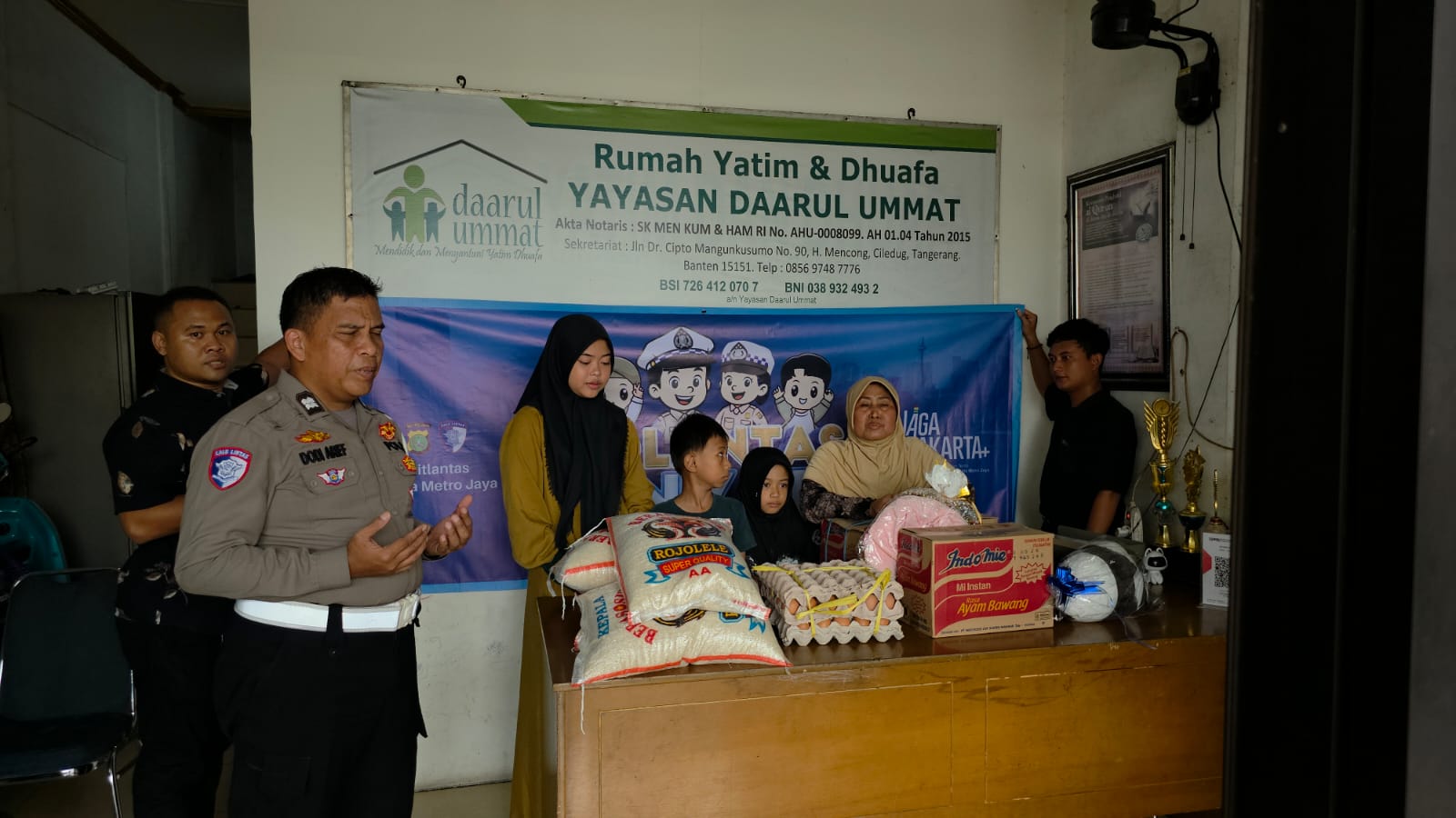 Tangerang Kota, mediakota.com — Bertempat di Yayasan Daarul Ummat, Jln.Dr.Cipto Mangunkusumo, Kec. Ciledug, Kota tangerang, diadakannya Giat Bakti Sosial Dalam Rangka Polantas Menyapa, pada hari, Kamis, (16/10/2025), pukul 11.00 s/d 12.00 Wib.