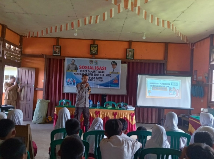 Kegiatan ini menyasar para siswa dan siswi SDN 04 Nyatang I sebagai bentuk edukasi sejak dini agar tercipta lingkungan sekolah yang aman, nyaman, dan bebas dari kekerasan. Sosialisasi tersebut dipandu langsung oleh Bhabinkamtibmas Desa Suka Damai, Bripka Sarif Hidayat, yang bertindak sebagai pemateri utama.